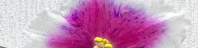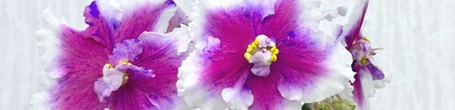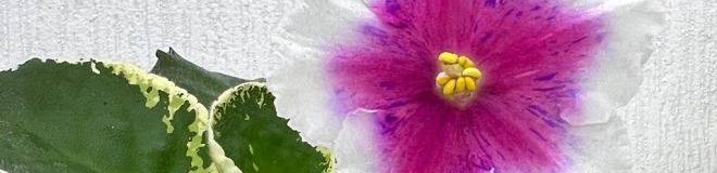 Крупные, около 6 см белые звезды с розовым глазком, усыпанным фиолетовыми штришками фентази.