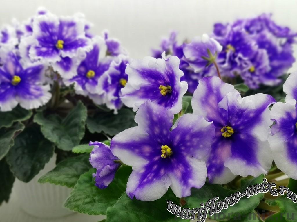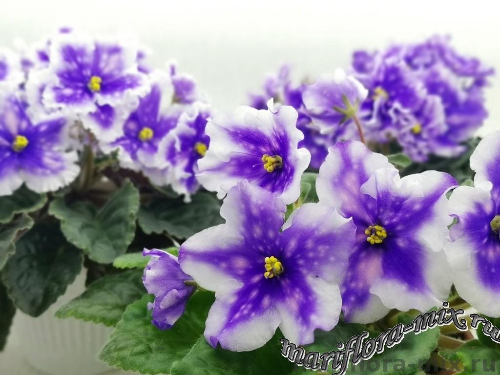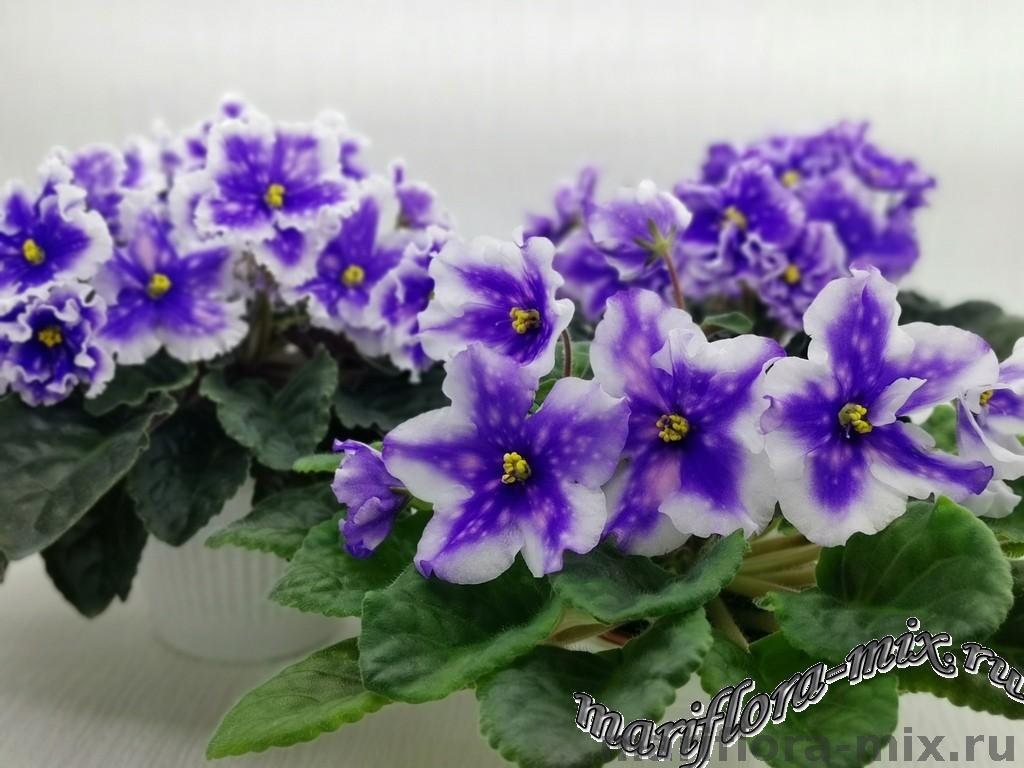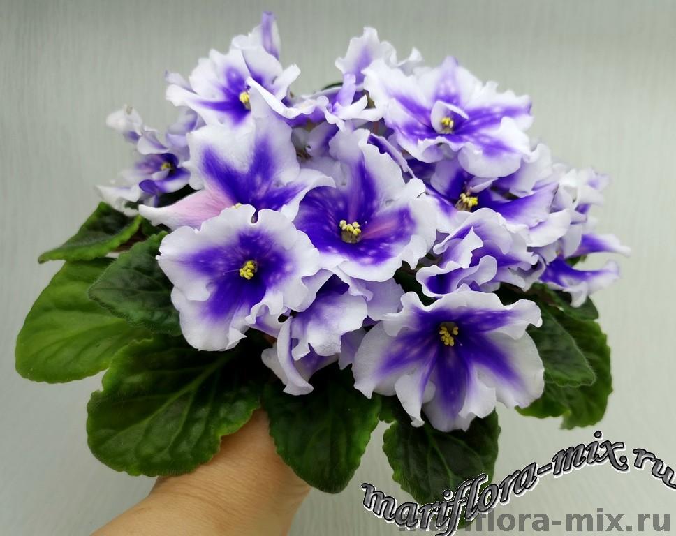 Очень крупные (8 см) лавандовые звёзды, густо усыпанные розовым горохом фентези, широкая белая кайма по краю лепестков. Количество белого варьируется в зависимости от температуры, в прохладе его больше. Фентези очень вариативной формы, по мере роспуска и взросления многие горошинки растекаются в «островки». Обильное длительное цветение.