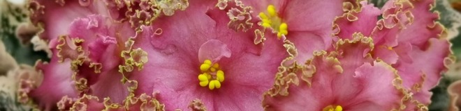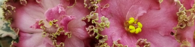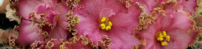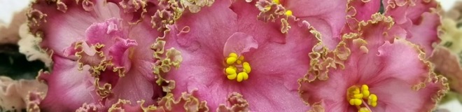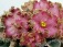 Лососевые звёзды в форме чаши, со сгущением цвета к краю лепестков и густым золотисто-зелёным рюшем. Очень длительное цветение.
