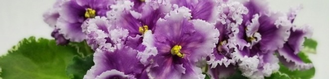 Лиловые звёзды, усыпанные розовым горохом фентези. Широкий белый волан по краю лепестков, обильное цветение. Светло-зелёная листва с белой “Tommie Lou” пестролистностью. Стандарт.