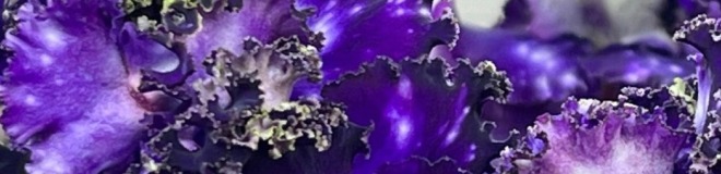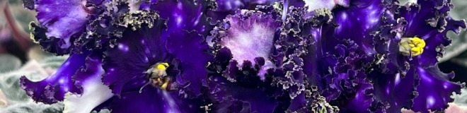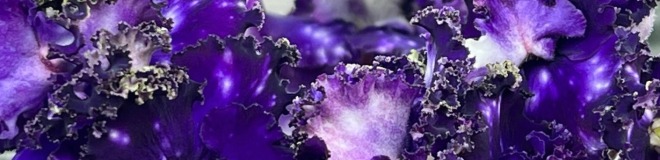 Очень темные чернильные полумахровые звезды, сплошь усыпанные белым горохом фентази. Горошины словно светятся изнутри. Край лепестков стянут ярко-зеленым рюшем. Продолжительное обильное цветение.