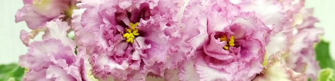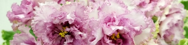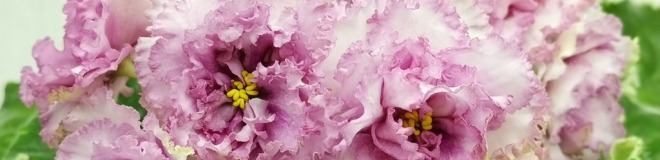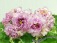 Крупные белые цветы формы розы с переходом в пепельно-розовый и эффектным фентази в виде мелких штришков темно-розового цвета. В центре цветка сгущение розового цвета которое при определенных условиях может растекаться на весь цветок. Интенсивность и количество розового вариативно в зависимости от температуры. Край лепестков рифлёный. Пестролистная “Tommie Lou” листва. Стандарт