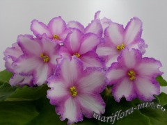 Химерный спорт от сорта ЕК-Китайские Фонарики с белыми химерными полосами по лепестках. Компактная розетка.
