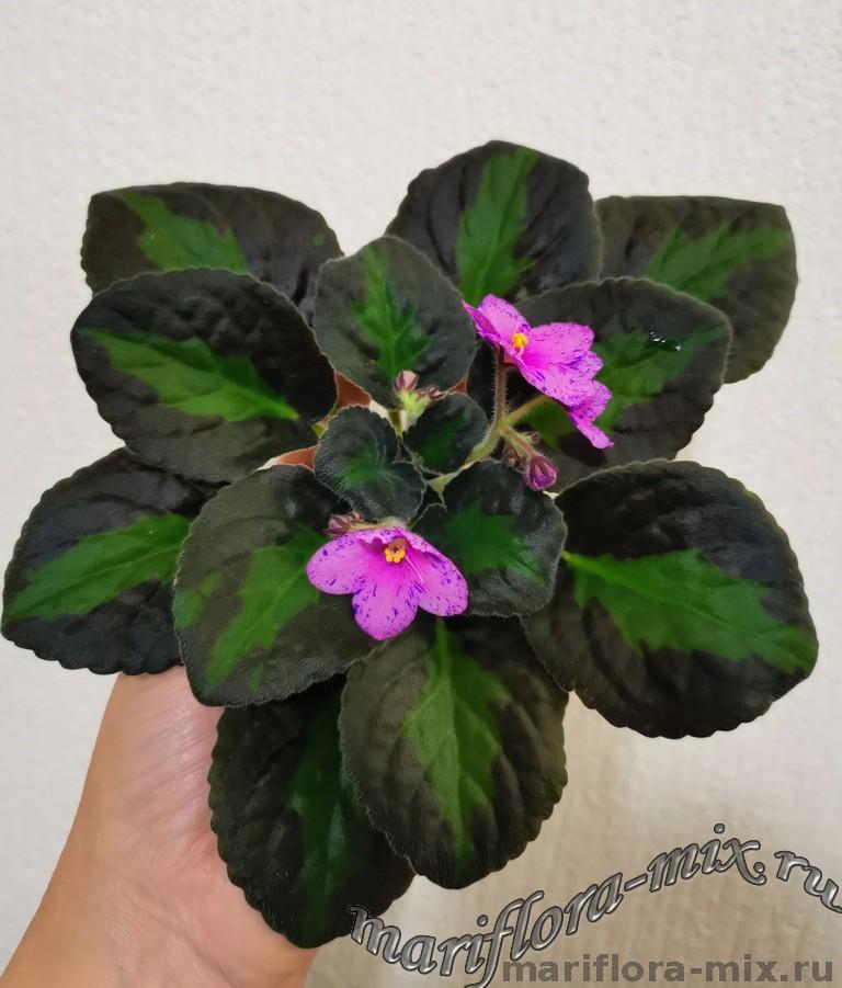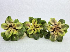 Листовая химера. Размер листков и розетки меньше, чем у исходника, компактная розетка. Полоска посередине листа широкая и полностью светлая, без штрихов темно-зеленого цвета. Цветки фиолетовые, очень часто без белого глазка, простые и полумахровые. Молодые листки в середине розетки имеют полоску светло-зеленого цвета, с возрастом эта полоска у старших листьев может становиться серебристого или телесного цвета (в зависимости от условий выращивания). Малый стандарт