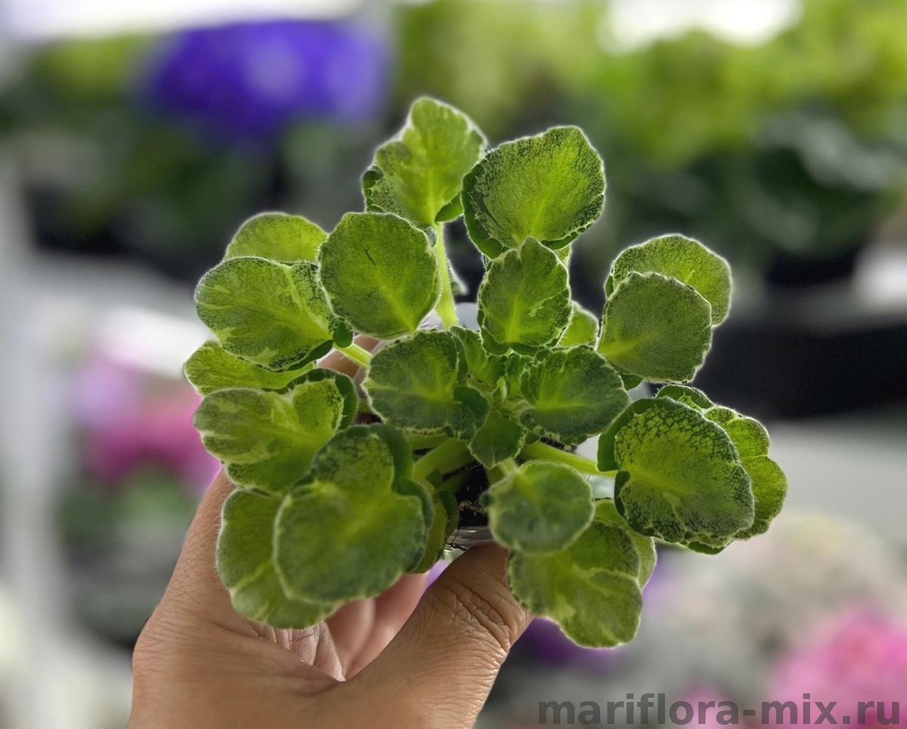 Листовая химера. Бело-зелено-салатовые листики, темно сиреневые цветочки. Мини