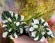 Миниатюрная листовая химера. Полумахровые белые анютины глазки с темно-синими глазками и вариабельной тонкой каймой. Светло-зеленая с белым остроконечная глянцевая листва. Размножение только пасынками.