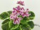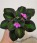 Bouquet of lots of deep orchid-mauve sdbl. pansies atop very rare, euonymous-like green and gold variegation impervious to heat or age. Miniature chimera. AVSA #9293