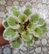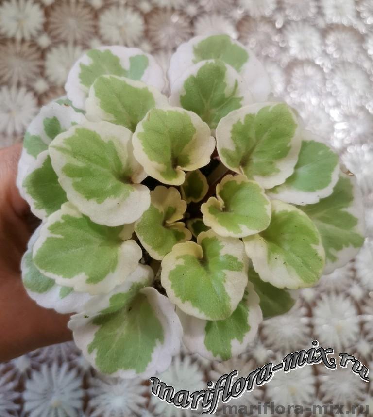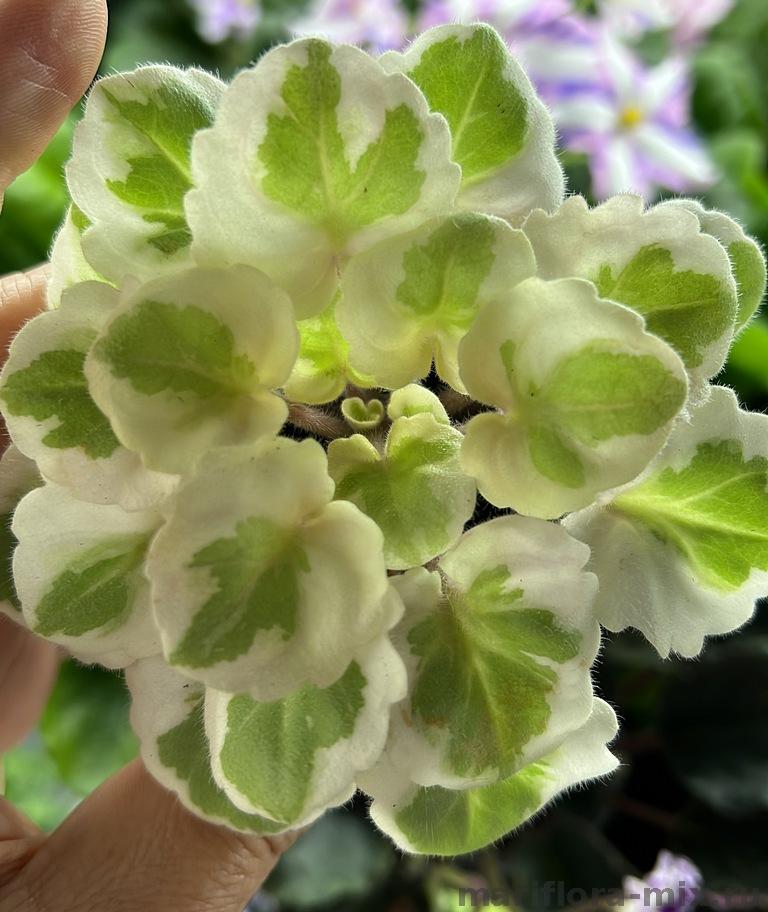 Листовая химера. Простые сине-фиолетовые анютки. Химерная, бело-зелёная гёл-листва с зубчатым краем. Первая в мире листовая химера с гёл-листвой. Полумини
