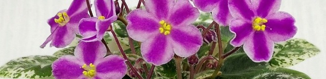 Фуксиевая полоса по розовому фону, цветы звезды. Розетка пестролистная, компактная. Продолжительное букетное цветение. Полумини или малый стандарт