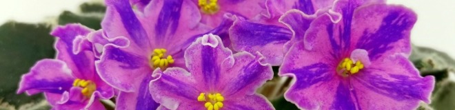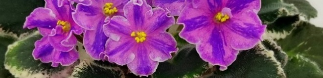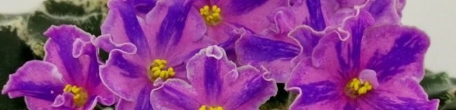 Простые и полумахровые розовые звезды с фиолетовыми химерными полосами и белой карандашной каймой. Пестролистная розетка. Стандарт