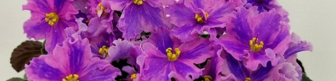 Крупные (6 см) простые и полумахровые звёзды с волнистым краем тепло-розового цвета с полоской из синего фэнтези в форме ручейков, и редких темно-синих отметин. Аккуратная выставочная розетка, листва темно-зеленая, слегка удлиненная. Стандарт