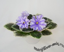 Крупные полумахровые нежно-сиреневые звезды с более темным кантом и химерными полосками. Темная ровная розетка. Стандарт