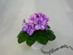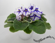 Крупные колокольчатые розовые цветы с широкими белыми полосками и белым кантом. Зеленая ровная розетка. Очень необычная и праздничная, чем то напоминает один из распространенных сортов глоксинии. Стандарт
