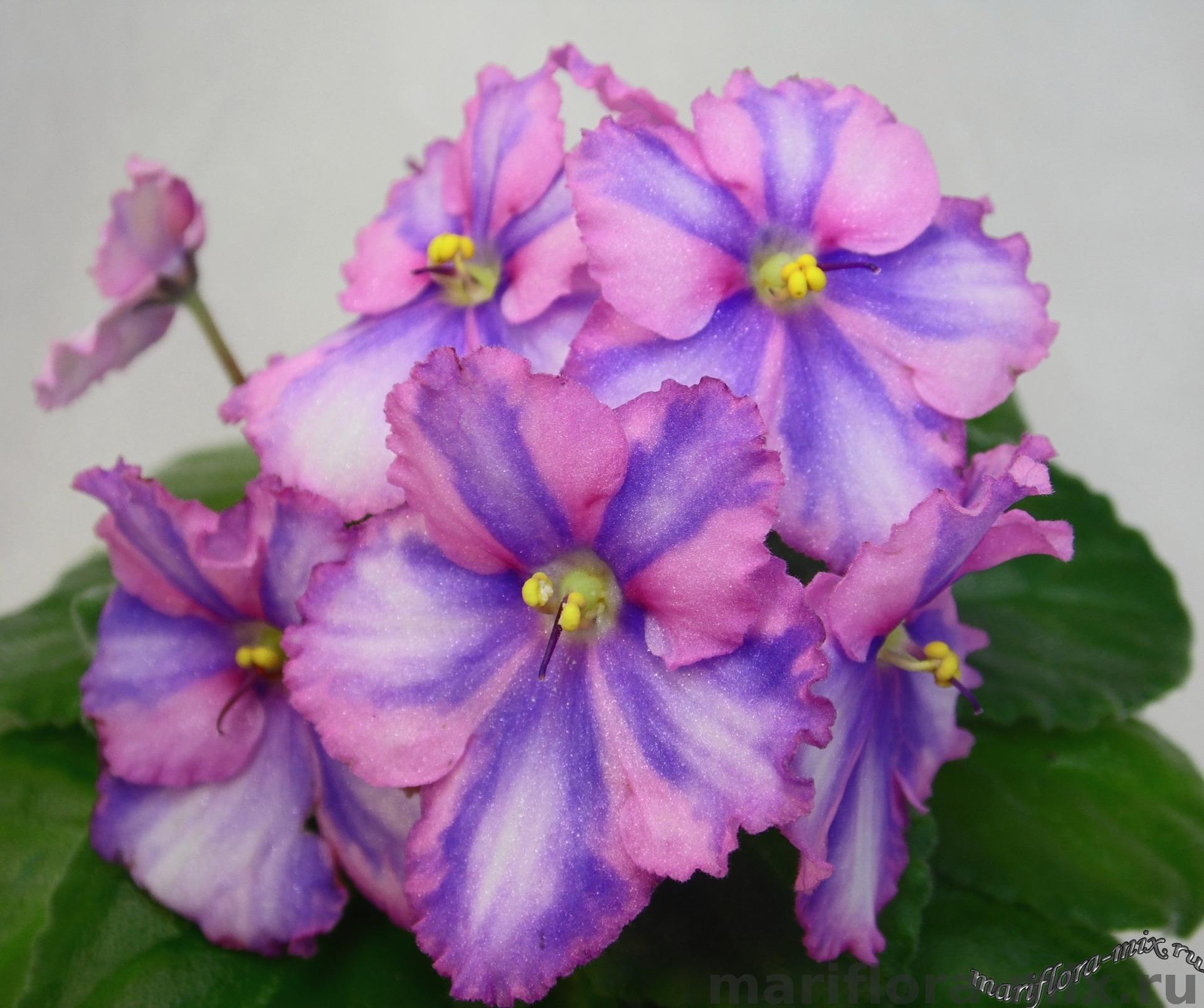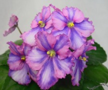 Невероятный трехцветный каскад цветов - по розовому фону светло сиреневые химерные полосы, по центру каждой полосы белая химерная полоса - "химера в химере". Маленькая розетка светлых листьев, постоянное шапочное цветение. Химера сказка! Имя шалунишки приведения Каспера подходит идеально.
