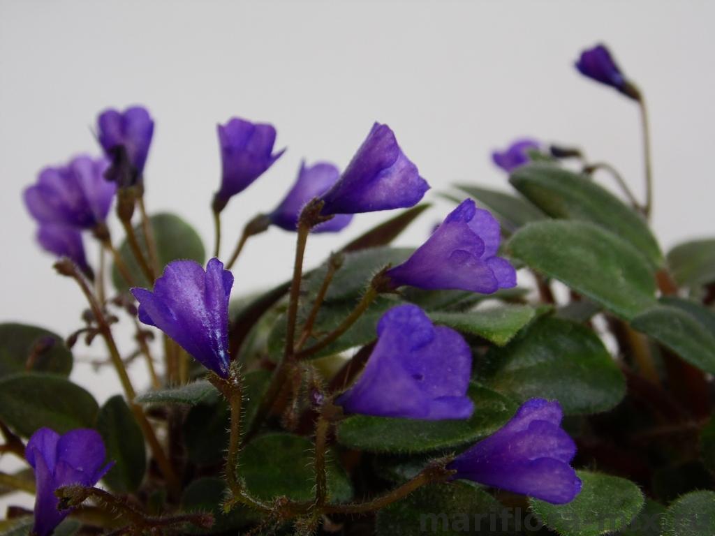 Простые темно пурпурные колокольчики над темно-зеленой заостренной листвой с красной изнанкой. Миниатюрный трейлер.