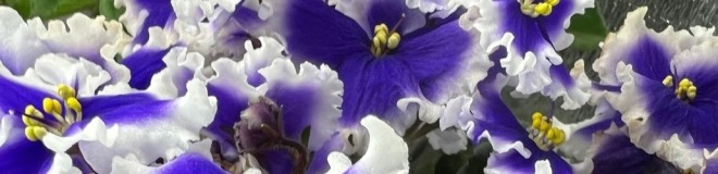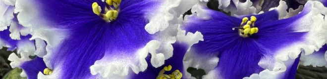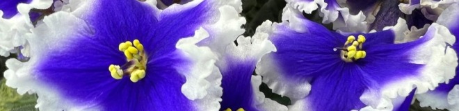 Крупная полумахровая звезда с ярко-синим глазком (лучами) и широким белым волнистым краем лепестков. Стандартная розетка.