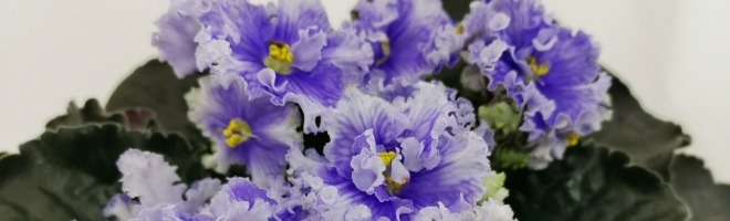 Крупные простые и полумахровые нежно голубые цветы с волнистыми краями лепестков. От центра к краю лепестка плавно переходит цвет от голубого до светло голубого. Украшает цветы сетчатый узор. В похладе появляется зеленая рюшка. Темная волнистая блестящая листва. 2018