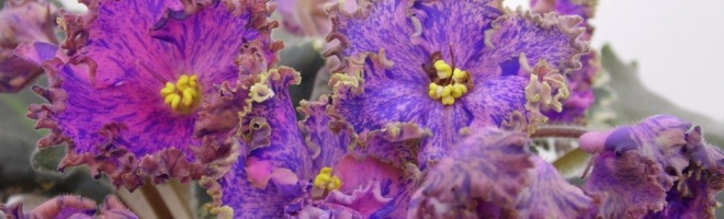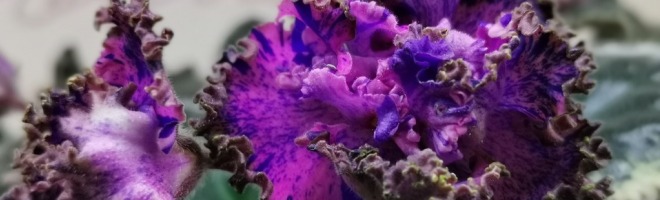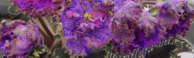 Яркие малиновые звезды со штрихами и фразментами синего фентези, гстая зеленая кайма. Аккурвтная розетка темных, слегка волнистых листьев с окаймляющей пестролистностью