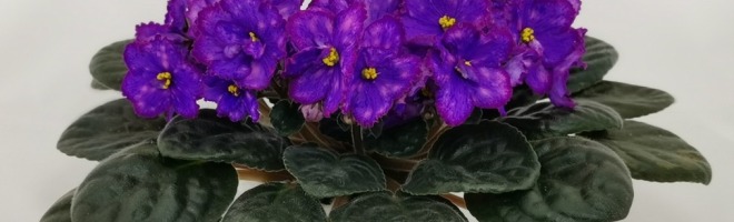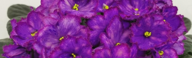 Крупные простые и полумахровые фиолетовые звёзды с очень широкой пурпурно-малиновой гофрированной каймой. Лепестки усыпаны ярко-розового фентази и тёмно-фиолетовые штрихами. Розетка из слегка стёганных темно-зелёных листьев, с красной изнанкой. Наилучшее цветение при низких температурах.