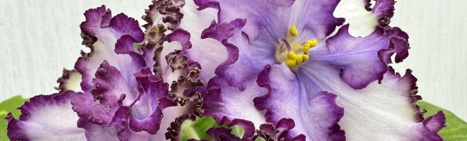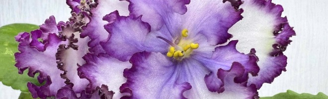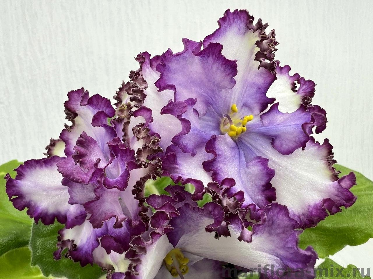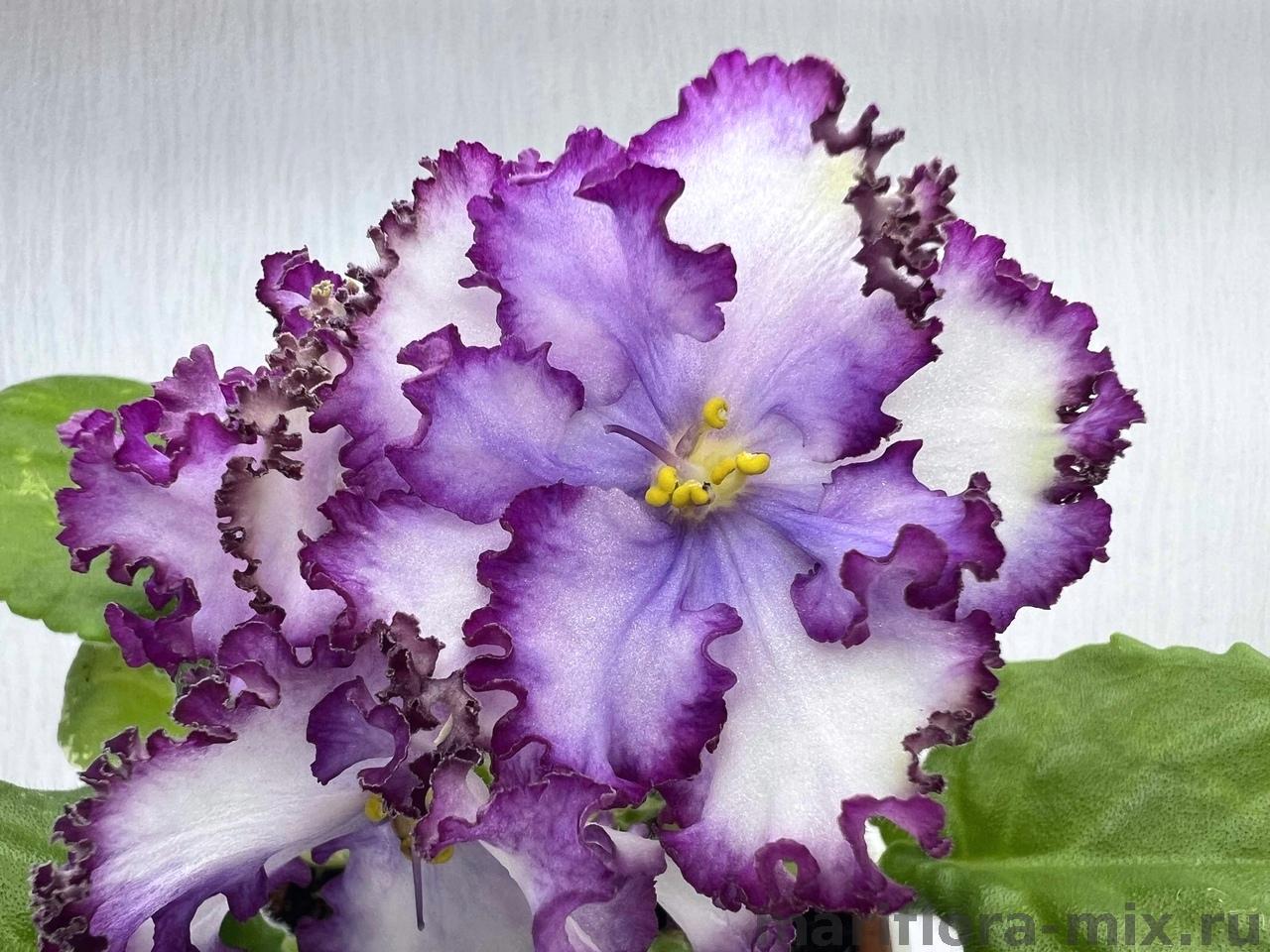 Розетка: Средне-зеленые, слегка волнистые, зубчатые листья с белой окаймляющей пестролистностью.