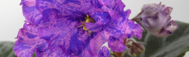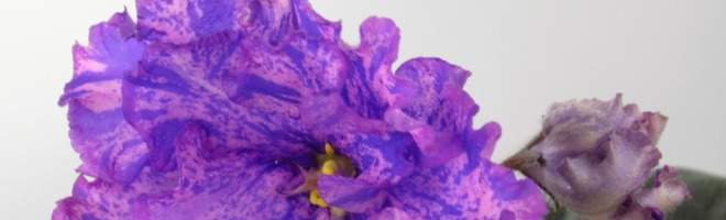 Крупные махровые колокольчики. Розовый и фиолетовый цвета сливаются в причудливые фантазийные узоры на лепестках цветка. Букетное цветение на прямых, крепких цветоносах. Средне зеленая розетка из крупных слегка подвернутых листьев. Сорт 2015 г.