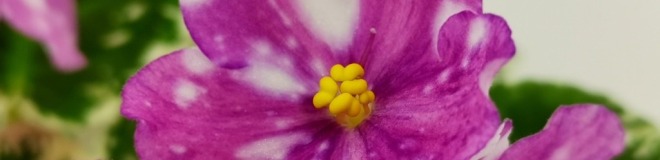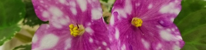 Single-semidouble red-pink large star/white puff fantasy, dark red and purple streaks. Variegated medium green, cream and pink, ovate, quilted, glossy/variable white-spotted red back. Standard
